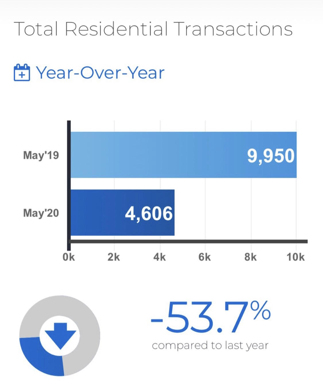 Toronto Regional Real Estate Board President Michael Collins announced that Greater Toronto Area REALTORS® reported 4,606 sales through TRREB’s MLS® System in May 2020. This result was down by 53.7 per cent compared to May 2019. While the number of sales was down substantially on a year-over-year basis due to the continued impact of COVID-19, the decline was less than the 67.1 per cent year-over-year decline reported for April 2020.